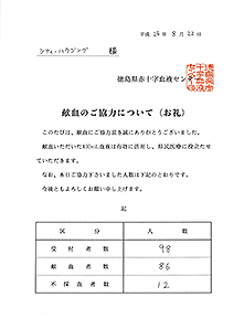 当日はボランティア含め総勢125名の方がご参加下さいました。そのうち98名の方にエントリーしていただき、86名の方に献血を行っていただきました。