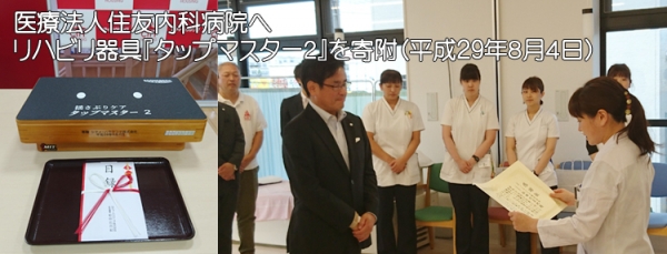 医療法人住友内科病院さまへ リハビリ器具「タップマスター2」を寄附いたしました。