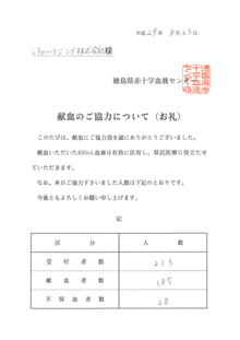 当社では血液不足解消に貢献するためこれからも社員一同一丸となり献血活動を続けていきたいと考えております。