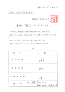 当社では血液不足解消に貢献するためこれからも社員一同一丸となり献血活動を続けていきたいと考えております。